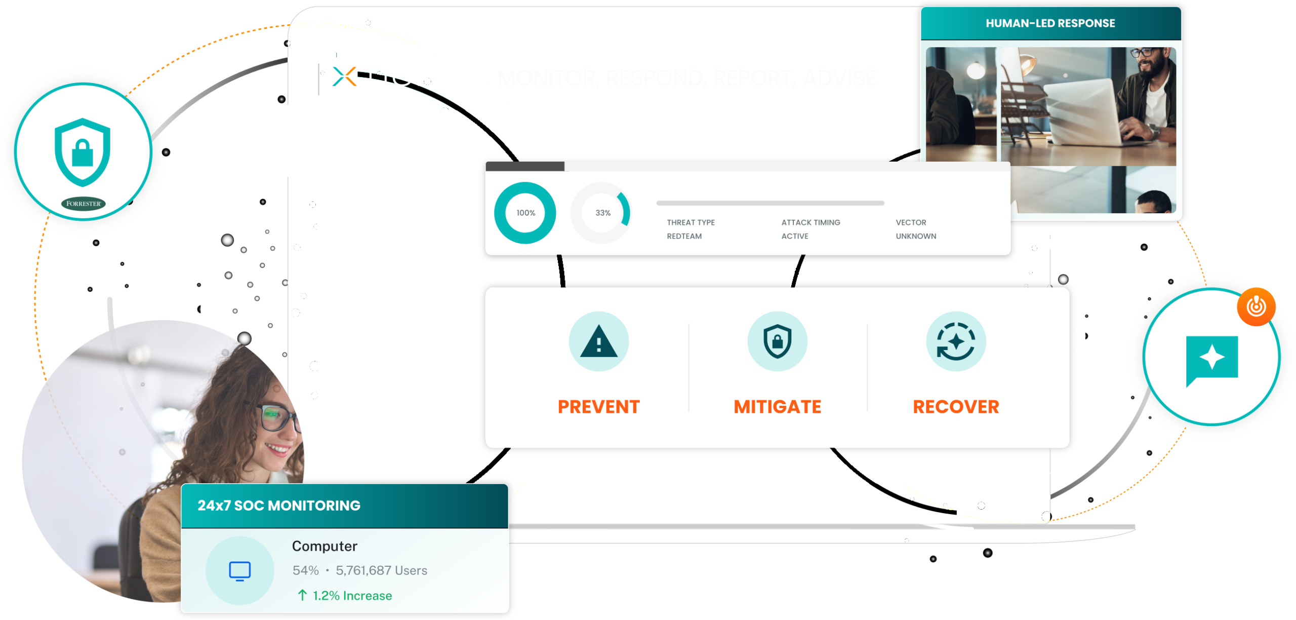 AI-driven detection and 24×7 SOC monitoring to prevent, mitigate, and recover from modern threats—fast